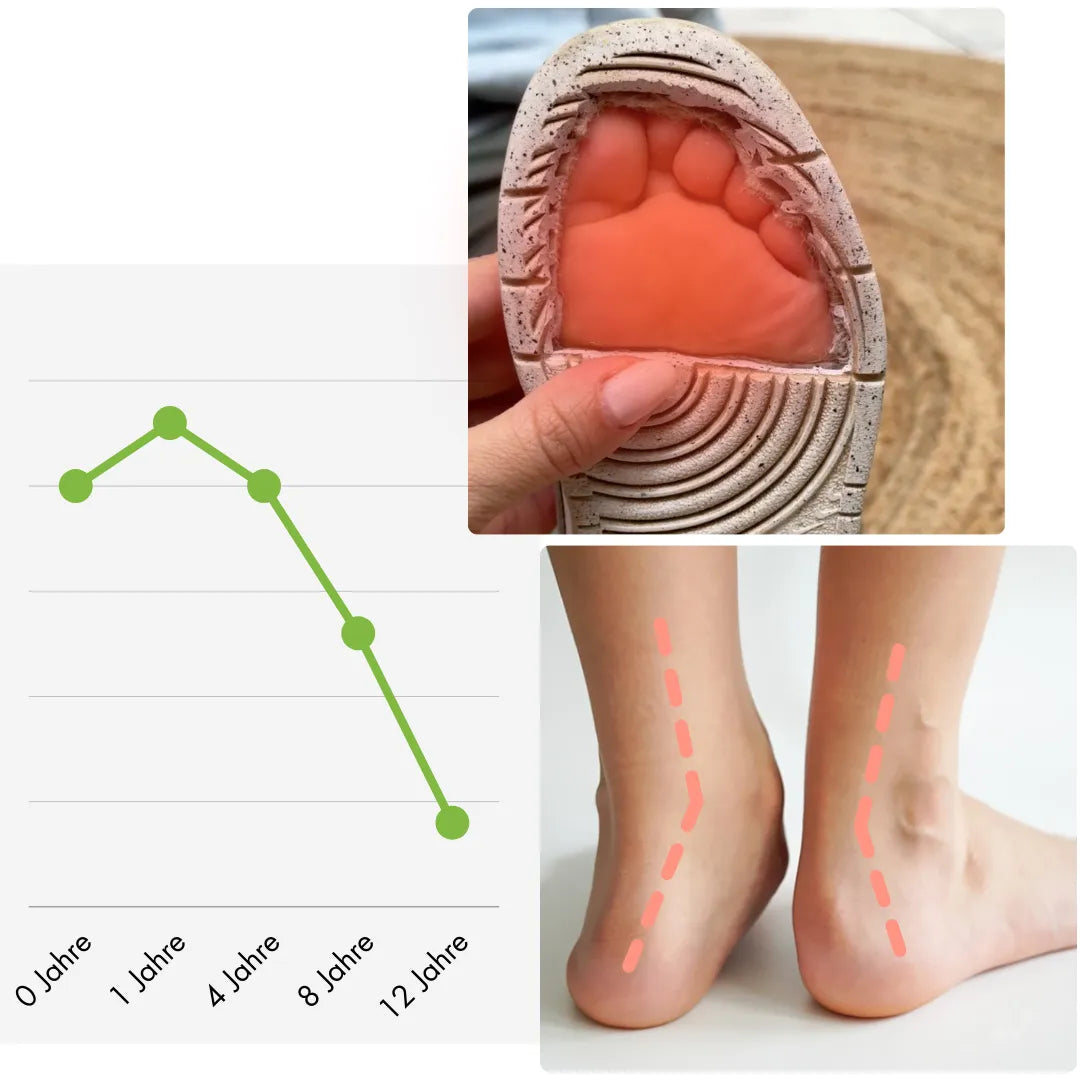 Bis zum 10. Lebensjahr sind die Knochen unserer Kinder noch weich und formbar, weil sie mitten im Wachstum sind. Und genau hier liegt das Problem normaler Kinderschuhe: