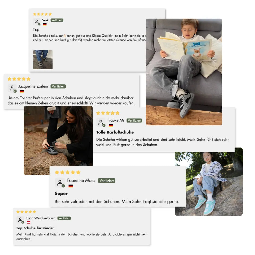 Compramos los Zapatos barefoot para ambos Niños y estoy encantada. Finalmente Zapatos que son cómodos, ajustan bien y dejan espacio a los pies. Se los ponen voluntariamente por la mañana – eso lo dice todo.