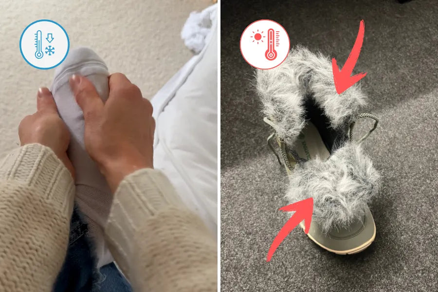 O demasiado grueso → se suda, los calcetines se humedecen y luego hace aún más frío.