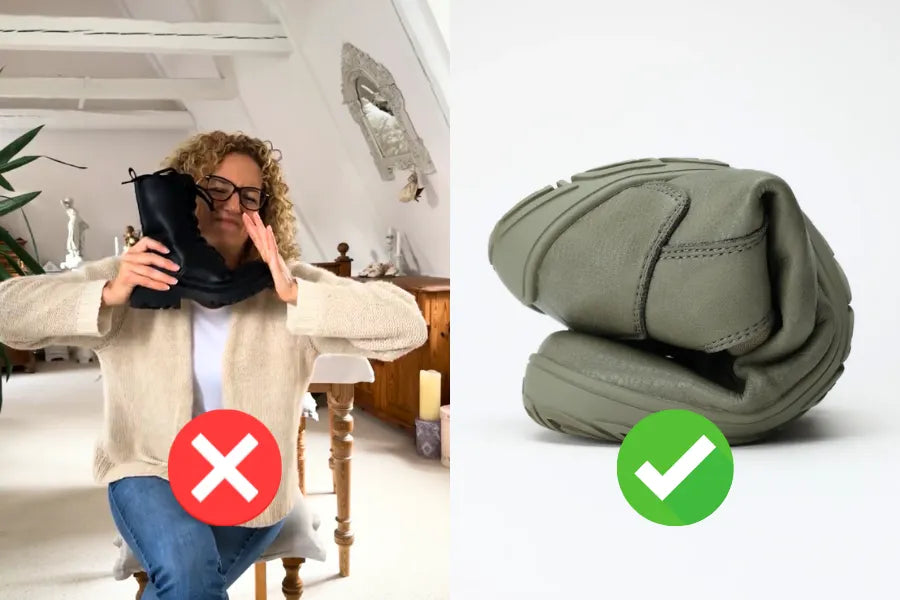 La suela DEBE ser fina y flexible – de lo contrario no hay efecto barefoot.